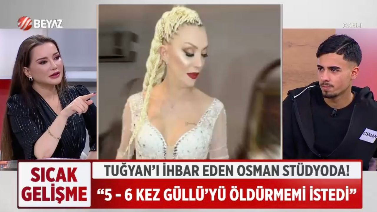 Osman bugün de Beyaz TV kanalına konuk oldu. Canlı yayında Güllü'nün ölümüyle ilgili bildiklerini anlattı. Tuğyan'ın kendisinden annesi Güllü'yü öldürmesini istediğini anlattı. Bu eylemi gerçekleştirmesi karşılığında kendisine bir daire vereceğini ve burada annesiyle birlikte yaşayabileceğini söylediğini belirtti.