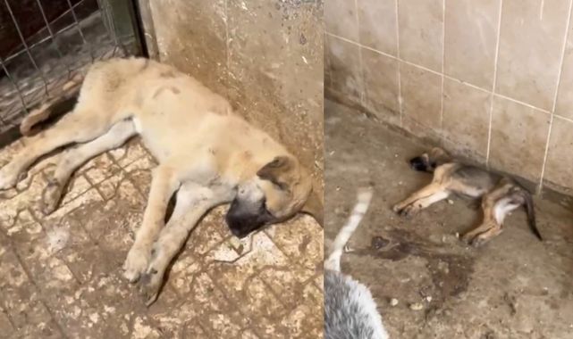 Gümüşhane'de bugün sabah saatlerinde barınağa giden hayvansever Mahmut Tonyalı tarafından çekilen görüntülerde boş mama ve su kapları dikkat çekerken, birçok köpeğin telef olduğu anlar kameralara yansıdı.