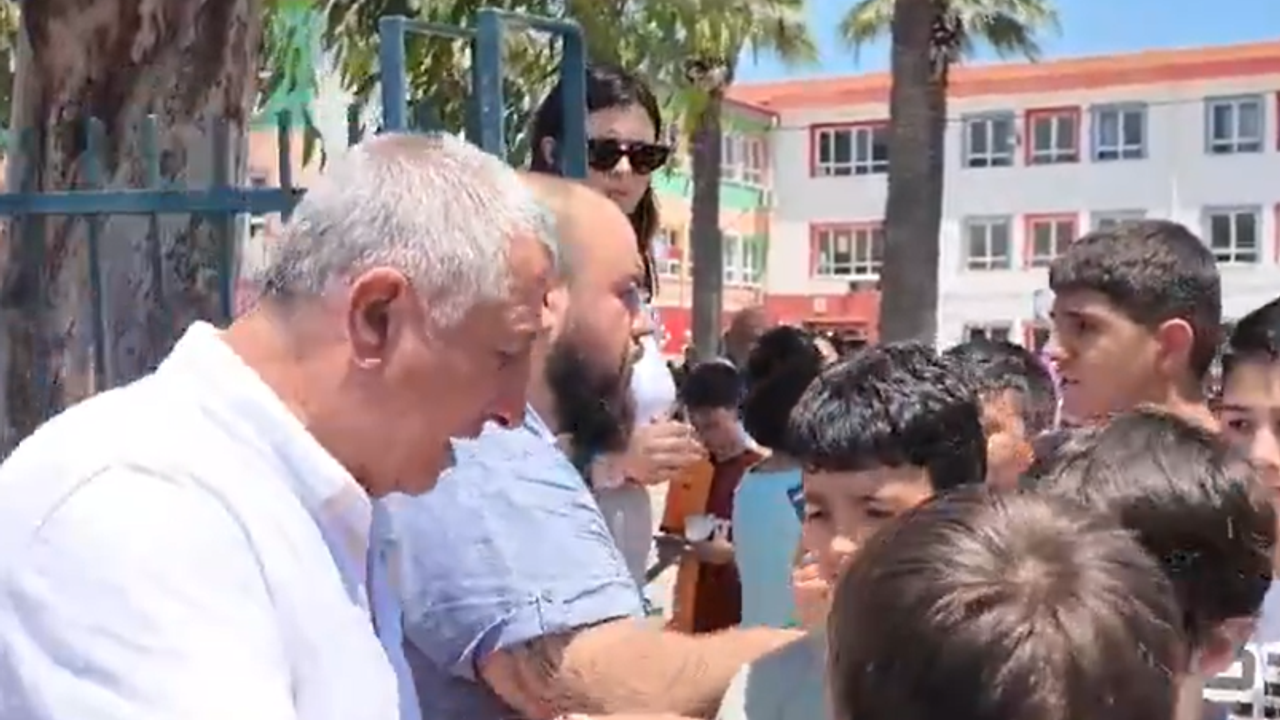 Güzelbahçe Belediye Başkanı Mustafa Günay açıklamasında, "Bugün öğrencilerimize dondurma, birer tane hamburger ve içecek dağıtacaktık. Ancak bugün Milli Eğitim'den gelen talimatla okul içine girmemiz yasaklandı. Biz de okul kapısının önünde çocukların çıkmasın bekliyoruz. Ne yaparlarsa yapsınlar bizi engelleyemezler. Bu çocuklarımıza gereken hediyeyi, gereken ihtiyaçlarını her zaman karşıladık, bugün de karşılamaya devam edeceğiz. Biz burada bekliyoruz, çocuklar da içeride bizi bekliyorlar. Tören biter bitmez çocuklarla buluşacağız. Her türlü engellemelere karşı bu mücadeleyi vermeye devam edeceğiz” ifadelerini kullandı.