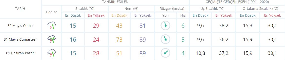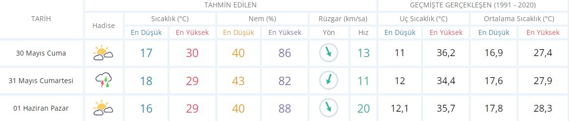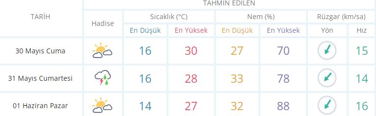 Cumartesi günü için tahmin edilen en düşük ve en yüksek sıcaklık değerleri ise şöyle: