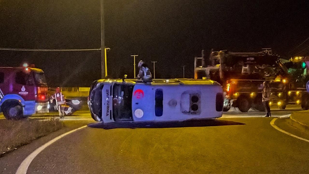 Silivri’de hasta almaya giden ambulans, Yeni Mahalle Abelia kavşağından dönerken otomobille çarpıştı. Çarpışmanın etkisiyle ambulans savrularak yol kenarındaki ağacı devirip yan yattı. Yaklaşık 30 metre sürüklenen ambulans içerisinde bulunan 3 sağlık görevlisi ile otomobilde bulunan 2 kişi yaralandı. İhbar üzerine olay yerine sağlık, itfaiye ve polis ekipleri sevk edildi. Çevredeki hastanelere kaldırılan yaralıların sağlık durumlarının iyi olduğu öğrenildi. Bir süre araç trafiğine kapanan yol Silivri Belediyesi ekiplerinin yol temizleme çalışmaları ve kazaya karışan araçların kaldırılmasının ardından normale döndü.