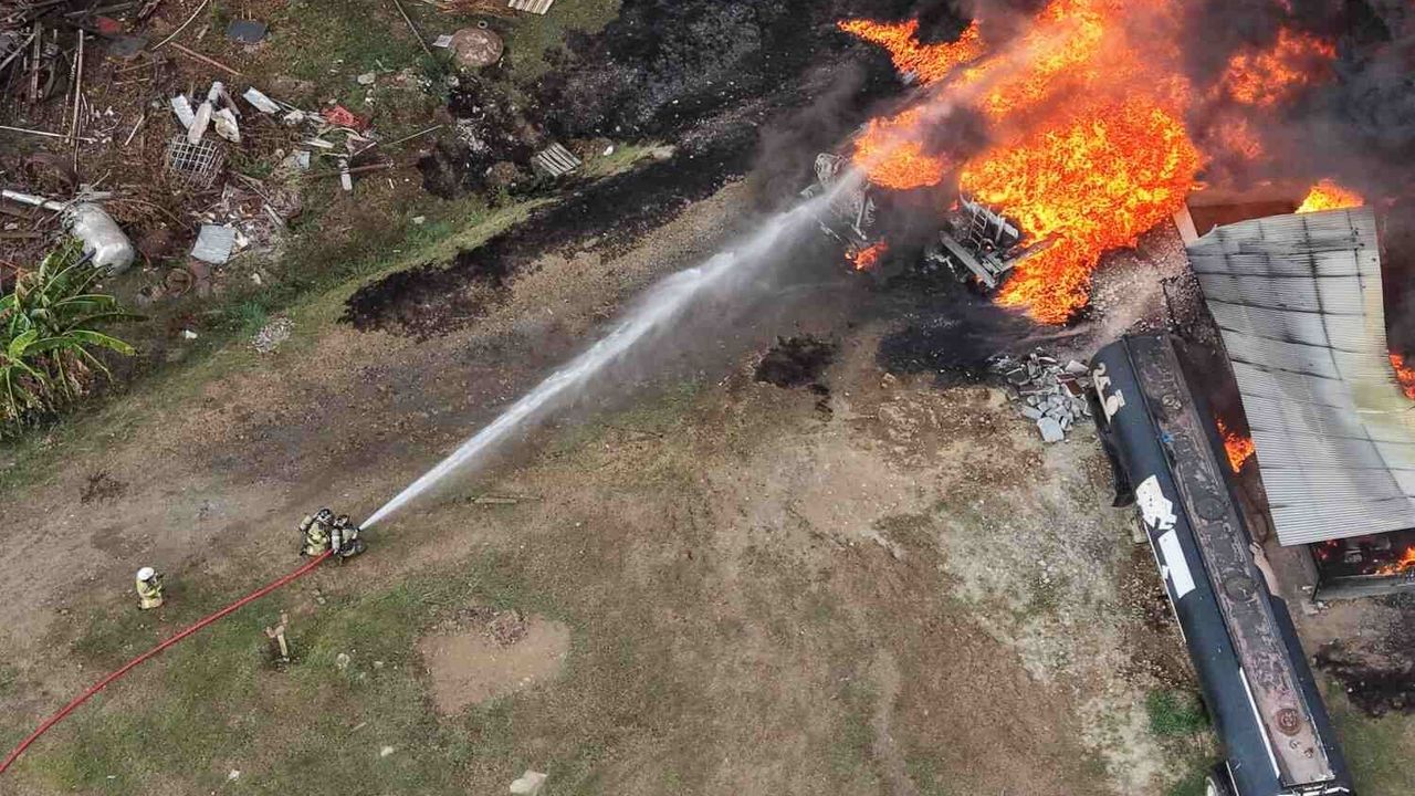 İlk patlamanın ardından alevler hızla yükselirken yangının güçlükle kontrol altına alındığı öğrenildi.