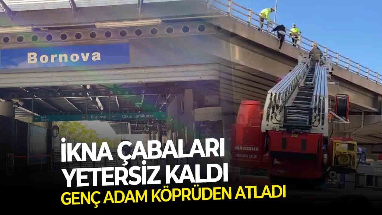 Bu sabah saatlerinde İzmir’in Bornova ilçesinde Abdulsamet Kılar isimli 27 yaşındaki genç, köprüye çıkarak çevrede endişe yarattı. İhbar üzerine olay yerine polis ve itfaiye ekipleri sevk edildi. Ekiplerin uzun süren çabalarına rağmen, üniversite öğrencisi genç adam kendisini köprüden aşağı bıraktı.