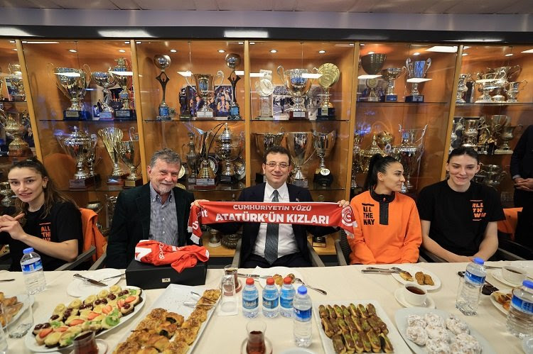 Ziyaret sonunda İmamoğlu’na, Eczacıbaşı Dynavit'in 100. yıl forması ile üzerinde “Cumhuriyetin Yüzü Atatürk’ün Kızları” yazılı atkı hediye edildi.