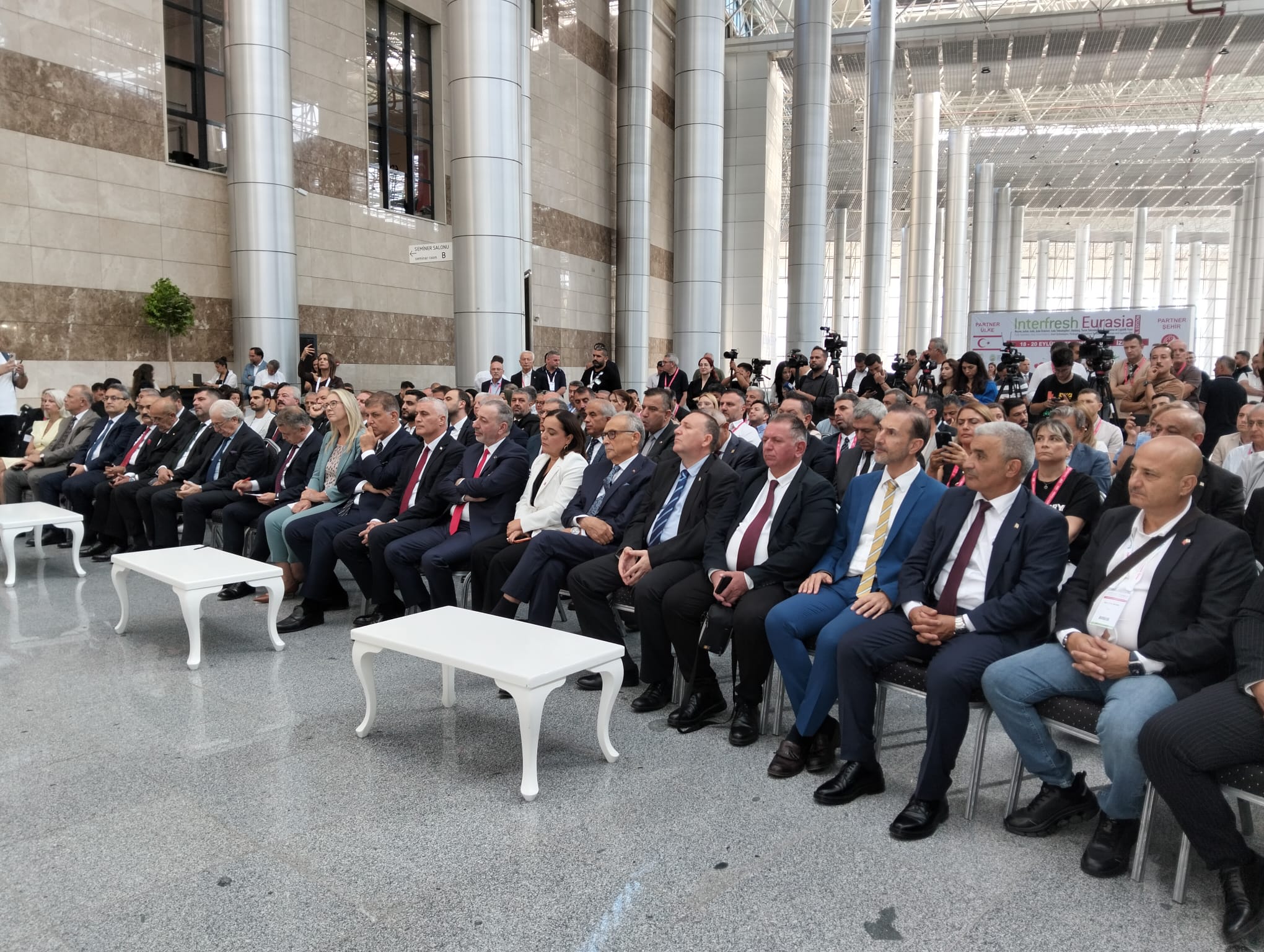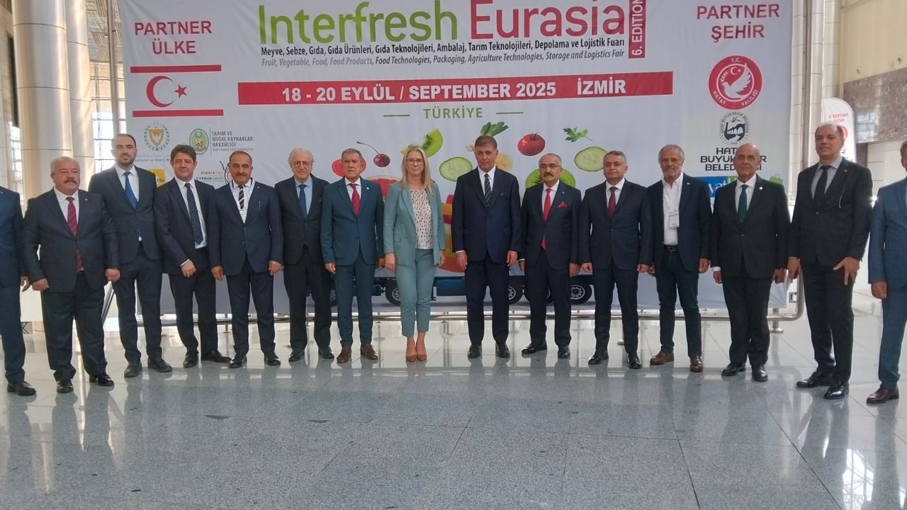 Son Mühür/ Emine Kulak- İzmir, tarım ve gıda sektörünün buluşma noktası oldu. İzmir Büyükşehir Belediye Başkanı Dr. Cemil Tugay, 6. Interfresh Eurasia Fuarı’nın açılışına ev sahipliği yaptı. Meyve, sebze, gıda ürünleri, ambalaj, tarım teknolojileri, depolama ve lojistik alanında dünyanın dört bir yanından firmaları ağırlayan fuarın açılışına Tugay’ın yanı sıra AK Parti İzmir Milletvekili Ceyda Bölünmez Çankırı, CHP İzmir İl Başkan Vekili Barış Özdemir, Gaziemir Belediye Başkanı Ünal Işık, Ege Yaş Meyve Sebze İhracatçıları Birliği Yönetim Kurulu Başkanı Hayrettin Uçak katıldı.
