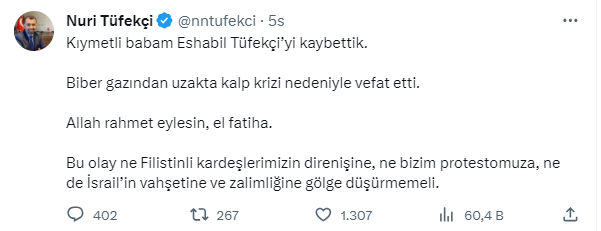 Yaşanan arbedede Saadet Partisi İstanbul İl Başlkan Yardımcısı Nuri Tüfekçi'nin babasının kalp krizi sonucu yaşamını yitirdiği öğrenildi.