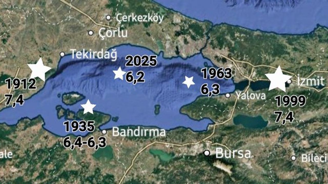 Son yüzyılda Marmara Denizi ve çevresinde meydana gelen büyük depremlere dikkat çeken deprem bilimci Prof. Dr. Osman Bektaş, 1935’de Erdek’te 6.4 ve 6.3, 1963’de Adalar’da 6.3 ve 2025’de Silivri’de büyük panik yaratan 5.2 büyüklüğünde depremler olduğunu hatırlattı.