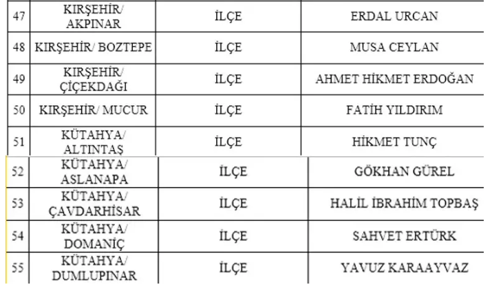 Milliyetçi Hareket Partisi 31 Mart seçimleri öncesi 2'si il 53 ilçe olmak üzere 55 adayını daha açıkladı. Buna göre; MHP Kilis Belediye Başkan adayı Hasan Kara, Uşak Belediye Başkan Adayı Sezer Ateş oldu.