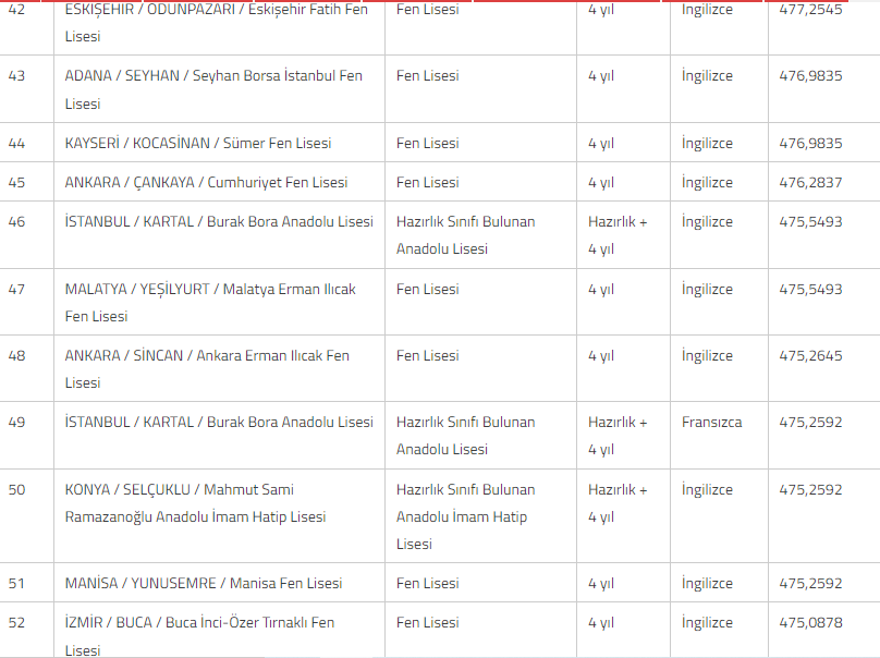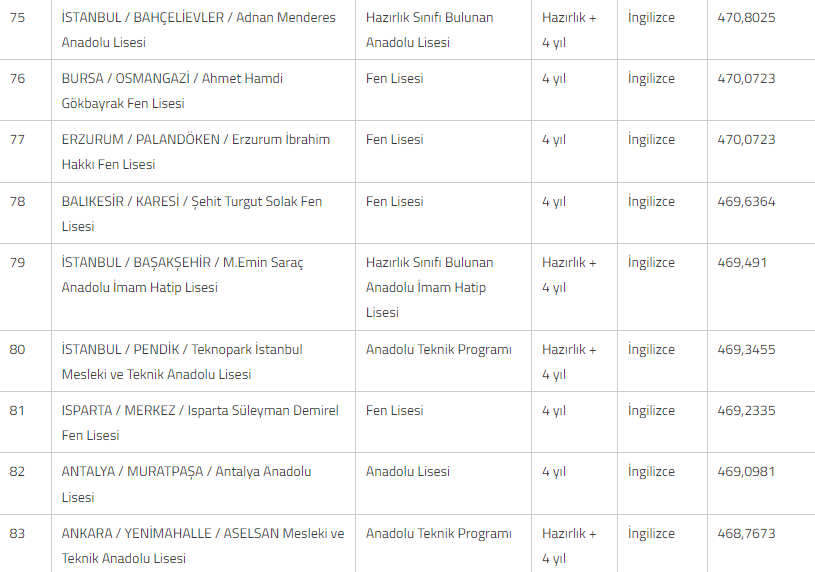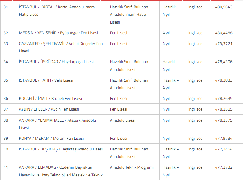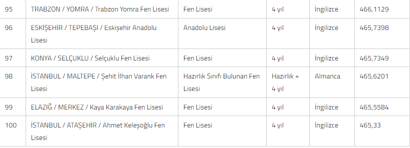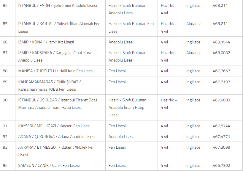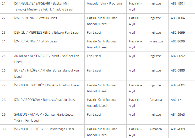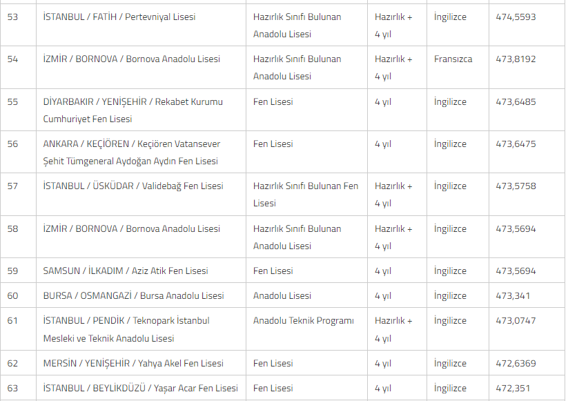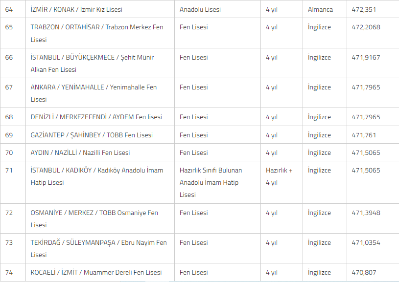 Listeye İzmir'den girmeyi başarmış okullar sıralamasında İzmir Fen Lisesi İzmir sıralamasında ilk sırada yer alırken Atatürk Lisesi'nin Almanca bölümü ikinci, İngilizce bölümü üçüncü ve Fransızca bölümü dördüncü sırasında onu takip ediyor. Genel sıralamanın 28'inci sırasında yer alan Bornova anadolu Lisesi Almanca bölümü ise İzmir listesinde Fen Lisesi ve Atatürk Lisesi'nin ardından listede yer alıyor. Açık kalan kontenjanlara yerleştirmeye esas nakil işlemleri iki dönem hâlinde yapılacak. Yerleştirmeye esas 1. nakil için tercihler 22 – 26 Temmuz tarihleri arasında yapılacak ve 1. nakil sonuçları 29 Temmuz’da açıklanacak. İkinci nakil tercih başvuruları ise 29 Temmuz – 2 Ağustos tarihleri arasında alınacak, sonuçlar 5 Ağustos’ta ilan edilecek.