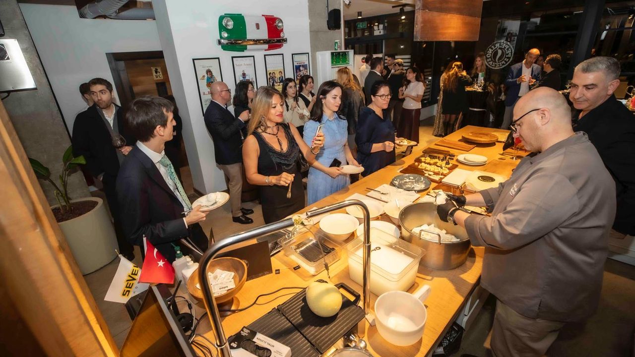 Gecede İtalyan şefler Emiliano Luggo, Cosimo Rotolo ve Simone Grazia, aynı anda mutfağa girerek konuklara özgün İtalyan tatları sundu. Etkinlikte gastronomi aracılığıyla İtalyan kültürünün önemli unsurları katılımcılarla paylaşıldı.