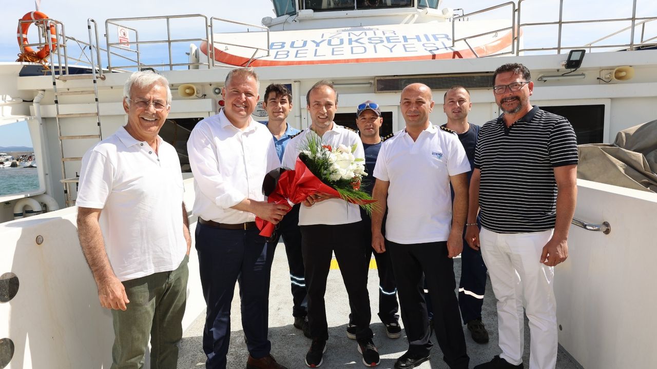 Sabah saatlerinde ilçelerine gelen yolcuları iskelelerde karşılayan Güzelbahçe Belediye Başkanı Mustafa Günay, Foça Belediye Başkanı Saniye Bora Fıçı ve Urla Belediye Başkanı Selçuk Balkan, gemi kaptanlarına ve İzdeniz A.Ş Yönetim Kurulu Başkanı Dr. Işıkhan Güler’e çiçek takdim etti.