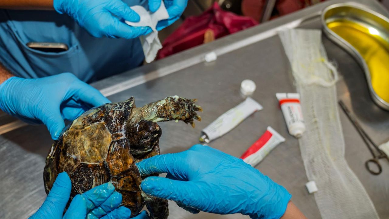 Veteriner Hekim Çolak, kaplumbağaya yapılan tıbbi müdahaleler hakkında da bilgi verdi. Kabuğundaki yaralar için yanık kremi, antibiyotikli ve doku yenileyici merhemler uygulanıyor. Ayrıca ağrıları için ağrı kesici tedaviye başlanmış durumda.