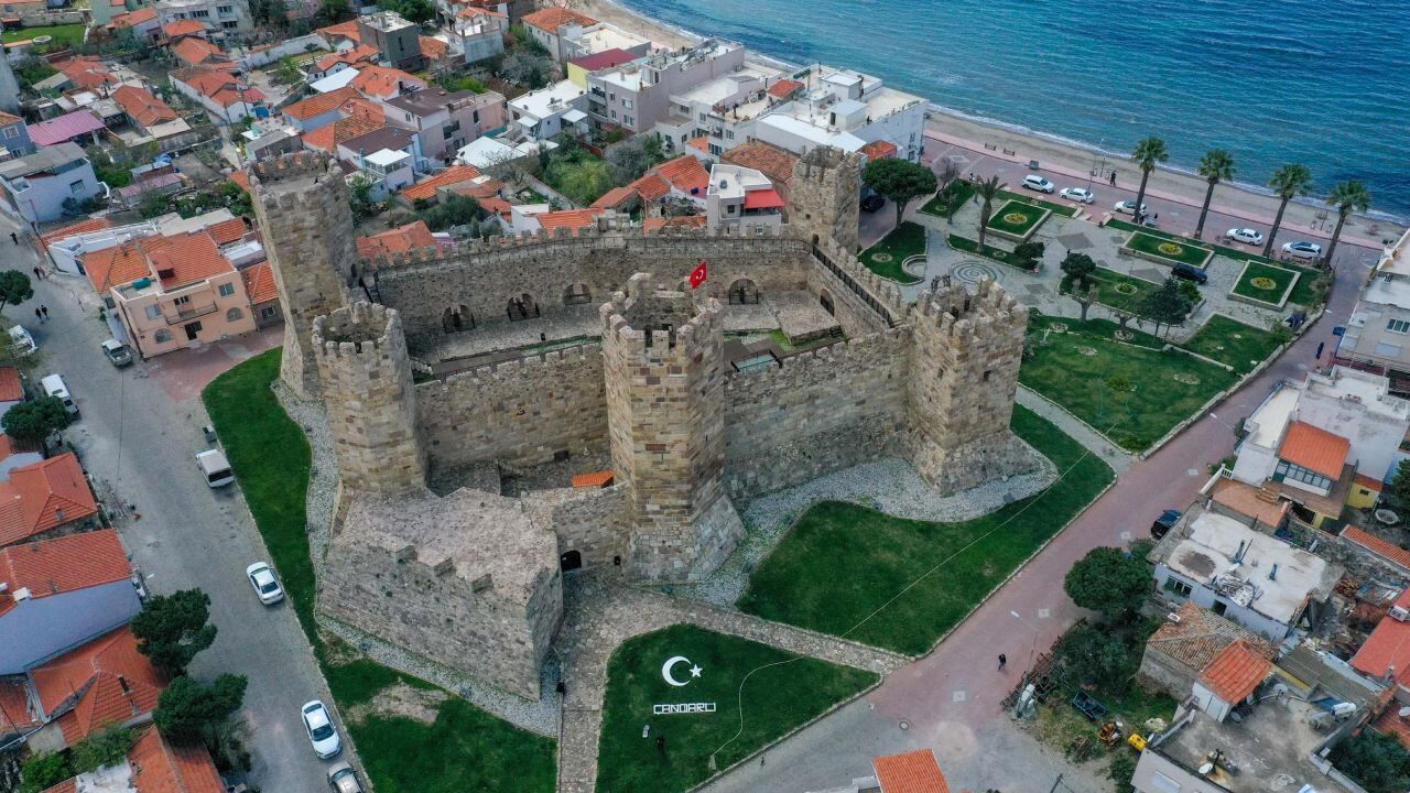 Çandarlı Kalesi, Ceneviz şövalyelerinin izlerini taşıyan surlarıyla dikkat çekiyor. Kareye yakın dikdörtgen planı, beş kulesi ve mazgallarıyla Orta Çağ askeri mimarisini yansıtan yapı, aynı zamanda İzmir’in tarihsel gelişimini okumak için önemli bir kaynak niteliğinde.
