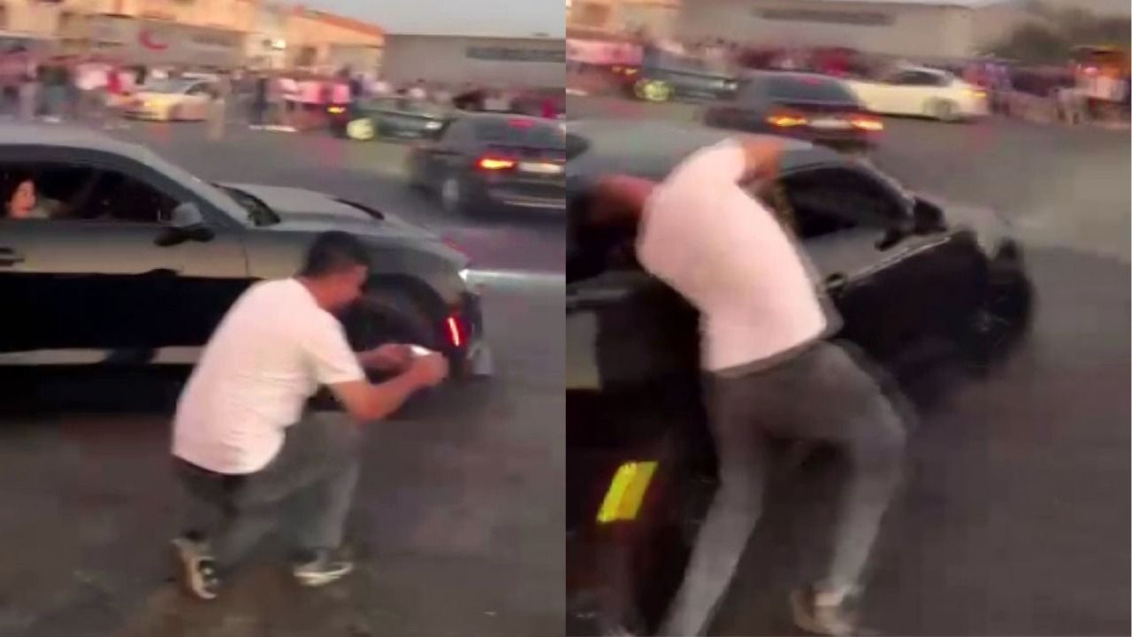 Edinilen bilgilere göre, geçtiğimiz gün akşam saatlerinde gerçekleşen etkinlikte, kalabalık bir grup, drift yapan araçları izliyordu. İzleyicilerden biri, cep telefonuyla bu tehlikeli anları kaydederken, hızla gelen bir otomobilin savrularak kendisine çarpmasıyla neye uğradığını şaşırdı. Çarpmanın etkisiyle yere savrulan izleyici, olay yerinde büyük bir panik yarattı. O anlar ise başka bir izleyici tarafından saniye saniye kaydedildi.