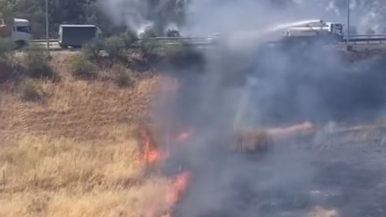 Alevler otoyol kenarında yayıldı