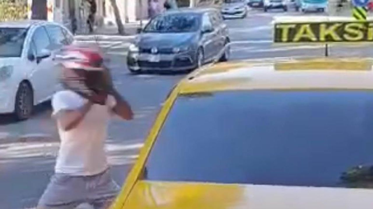 Motosikletten inen A.Y., kaskıyla taksinin camına defalarca vurmuştu. Ardından iki sürücü arasında yumruklu kavga başlamıştı.