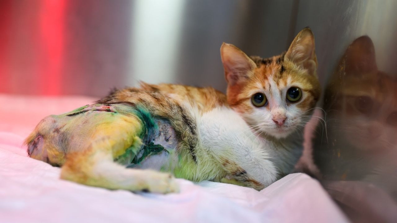 Araç çarpması sonucu ağır yaralanan sokak kedisi, Buca Belediyesi Sokak Hayvanları Rehabilitasyon ve Bakım Merkezi’ne getirildikten sonra yoğun bakım ve tedavi süreciyle yaşam mücadelesini kazandı. Sevimli kediye “Azim” adı verildi.