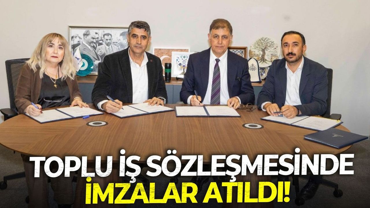 Son Mühür/ Osman Günden- İzmir Büyükşehir Belediyesi, kamu emekçilerinin refah düzeyini artırmak ve çalışma koşullarını iyileştirmek amacıyla yürüttüğü toplu iş sözleşmesi sürecini zaferle noktaladı. Belediye Başkanı Dr. Cemil Tugay ile TÜM BEL-SEN İzmir 1 No’lu Şube arasında varılan mutabakat çerçevesinde, belediye, ESHOT ve İZSU bünyesinde görev yapan toplam 6 bin 173 memur ve sözleşmeli personeli kapsayan kapsamlı bir sözleşme imzalandı. İzmir Sanat Merkezi'nde gerçekleştirilen ve bayram havasında geçen imza töreninde, çalışanların mali haklarının yanı sıra sosyal imkânlarını da genişleten devrim niteliğinde maddeler karara bağlandı.