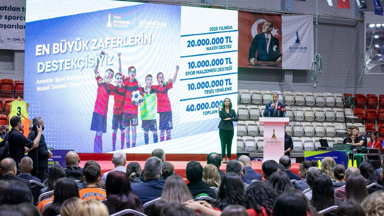 Son Mühür/ Osman Günden - İzmir Büyükşehir Belediyesi, amatör spor kulüplerine sağladığı destekleri bu yıl artırdı. 282 kulübe 20 milyon lira nakdi katkı sunulurken, 10 milyon liralık malzeme desteği ve 10 milyon liralık tesis bakım–yenileme yatırımı ile toplam destek tutarı 40 milyon liraya ulaştı. Celal Atik Spor Salonu'nda düzenlenen törende, 3 bin 500 sporcu, antrenör ve kulüp yöneticisi ile bir araya gelindi.