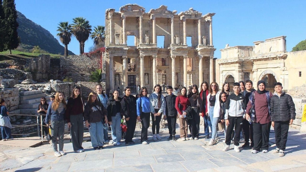 Öğrencilerin sınav stresi içinde yaşadığı kaygıyı azaltmak, sosyal etkileşimlerini güçlendirmek ve zihinsel olarak yenilenmelerine katkı sunmak amacıyla yapılan gezi, UNESCO Dünya Mirası Listesi’ndeki Efes’in tarihi dokusunu yerinde tanıma fırsatı sundu.