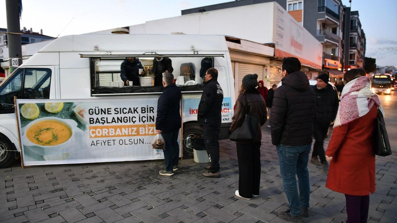 İşe ve okula gitmek üzere yola çıkanların yanı sıra gece vardiyasından dönen Çiğlililer, belediyenin ikram ettiği sıcak çorbayla güne enerjik bir başlangıç yaptı.