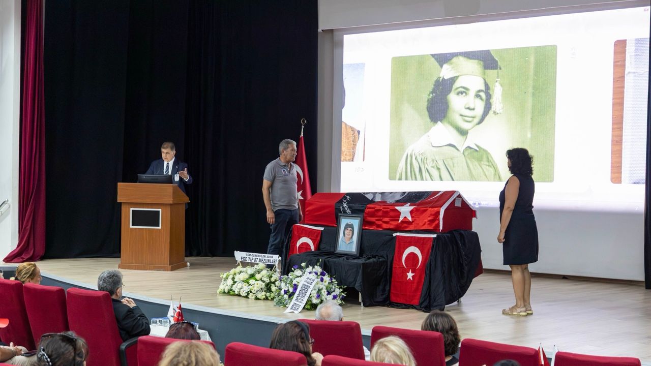 84 yaşında hayatını kaybeden Ege Üniversitesi Tıp Fakültesi Tıbbi Mikrobiyoloji Anabilim Dalı Emekli Öğretim Üyesi Prof. Dr. Emel Tümbay için Ege Üniversitesi Tıp Fakültesi Muhittin Erel Amfisi’nde tören düzenlendi. Törene Tümbay’ın öğrencileri, ailesi, dostları, akademisyenler ve meslektaşlarının yanı sıra Ege Üniversitesi Tıp Fakültesi mezunu olan İzmir Büyükşehir Belediye Başkanı Dr. Cemil Tugay da katıldı.