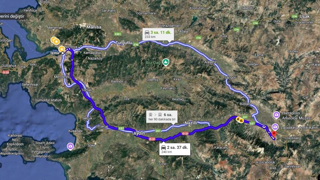 İZMİR DENİZLİ ARASI KAÇ KM VE KAÇ SAAT SÜRÜYOR?