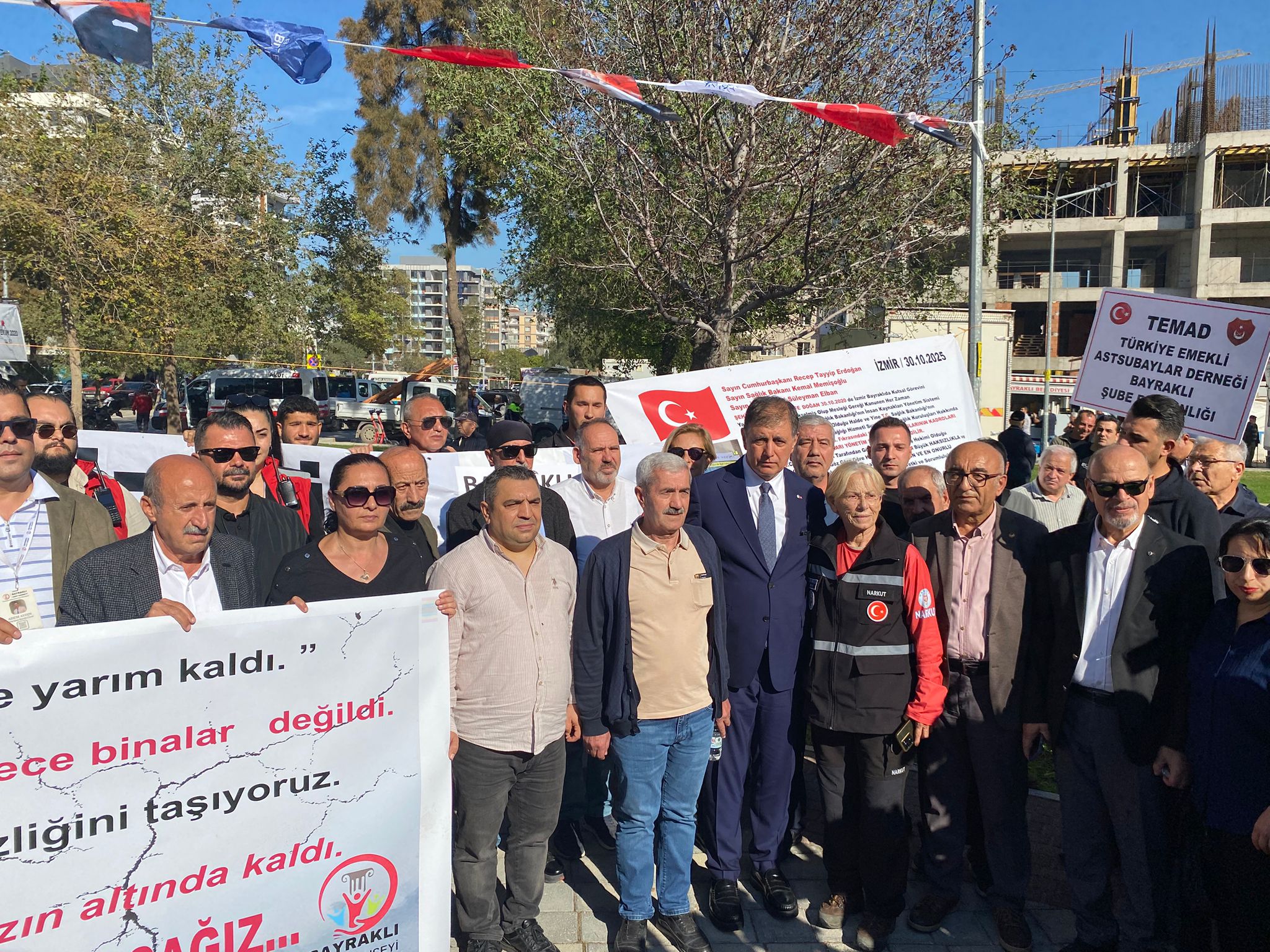 Sadece binaların değil, vicdanların da sınavdan geçtiğini vurgulayan CHP İzmir İl Başkanı Çağatay Güç, “Bazen hayatın gerçeklerinden uzaklaşıyoruz. Ben bir inşaat mühendisiyim ve çözülemeyecek inşaat yoktur. Ekonomik zorluklardır. Bu da iktidardan kaynaklı. O gün bu şehir yıkıldı ama İzmir’in dayanışması yıkılmadı. Aynı yemeği, aynı battaniye paylaşıldı. Bu ülkede binalar çöküyor ama sorumlular hiç yargılanmıyor. Arsaların metrekare değerleri konuşuluyor. Geldiğimiz noktada insanlar artık tabutta yaşamaya mahkum hale getirildi. Devletin görevi vatandaşa beton değil güvenli ev sunmak. Taşıdığımız sorumluluğu hatırlıyoruz. İzmir dayanışmanın gücü ile yeniden hayatta kalkacak. Ancak asıl yıkım binanın çökmesi değil vicdanın çökmesidir. Kaybettiğimiz tüm yurttaşları rahmetle anıyoruz” diye konuştu.