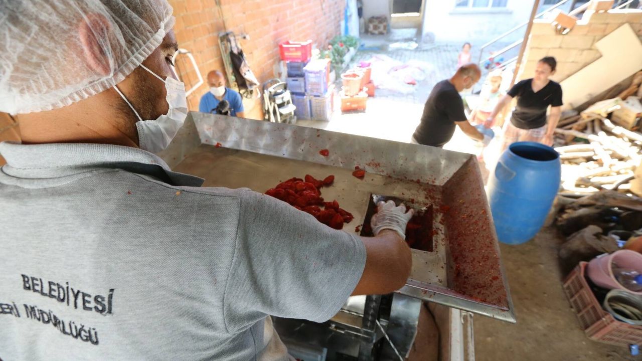 Belediye, “Salçalık domatesler hazırlansın, kadınlar keyfine baksın!” sloganıyla yıllardır süren destek çalışmasını bu sezon da sürdürüyor.