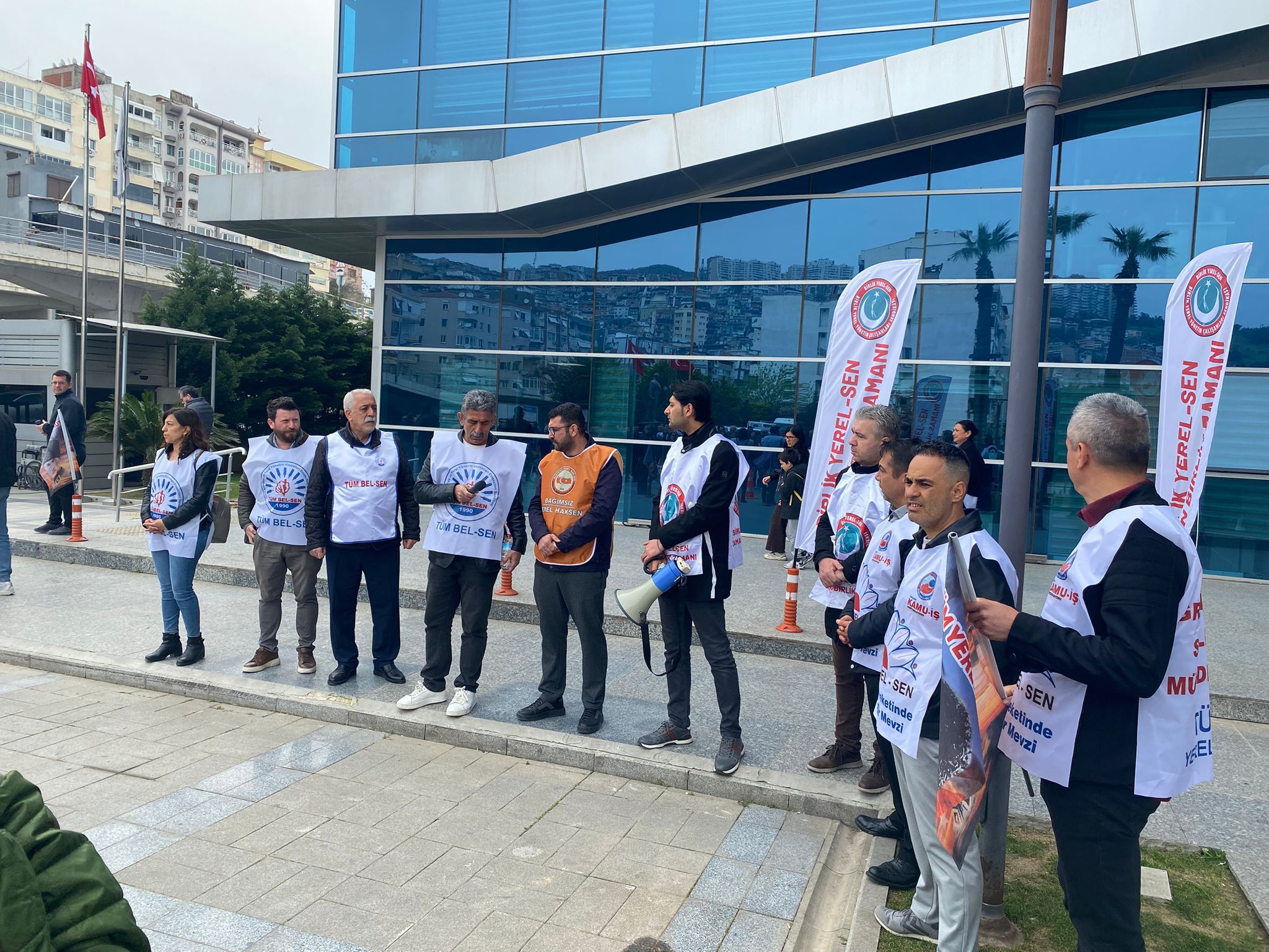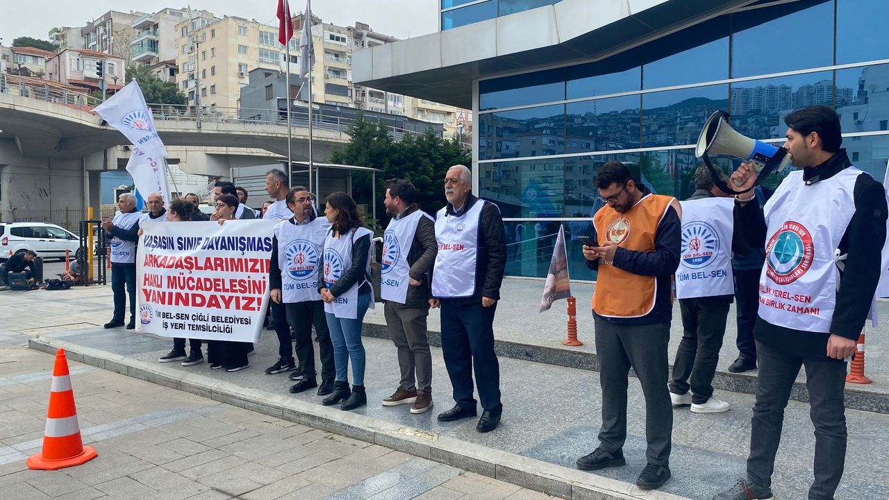 Öte yandan eyleme Tüm Bel Sen Çiğli Belediyesi iş yeri temsilcileri de destek verdi. Çiğli memurlarına teşekkür eden Tüm Bel Sen 2 Nolu Şube Başkanı Nihat Filiz, "Çiğli belediyesi yasal sınır mücadelesini verip TİS'lerini imzaladı. Sözleşmeleri devam ediyor. Buraya verdikleri destekten dolayı teşekkür ediyoruz" dedi.