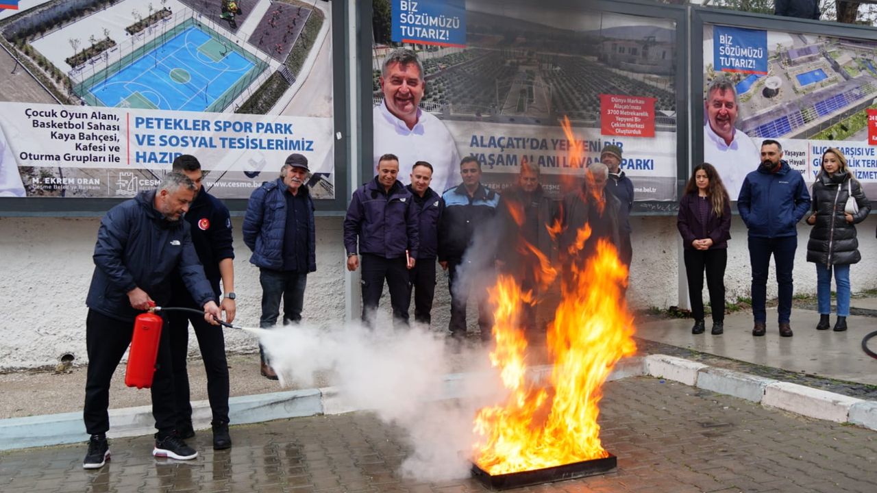 Zabıta Daire Başkanlığı’nın Alaçatı Çarşı’da yapılan eğitimlerde zabıta personeli, yangın yanma bilgisi, yangın yerindeki tehlikeler, söndürme maddeleri ve teknikleri gibi başlıca konularda eğitime tabi tutuldu. İtfaiye Eğitim Şube Müdürlüğü’nde görev yapan eğitmen tarafından verilen eğitimlerin sonunda zabıta personeline yangın söndürme tatbikatı yaptırıldı.