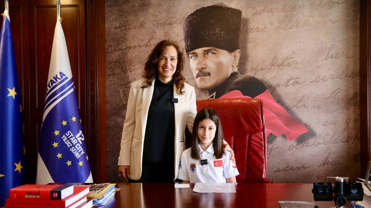 Son Mühür / Merve Turan - Karşıyaka Belediyesi, 23 Nisan Ulusal Egemenlik ve Çocuk Bayramı etkinlikleri kapsamında sembolik olarak başkanlık koltuğuna oturan ilkokul öğrencisi ve satranç şampiyonu Eslem Tolan’ın hayalini gerçeğe dönüştürüyor.