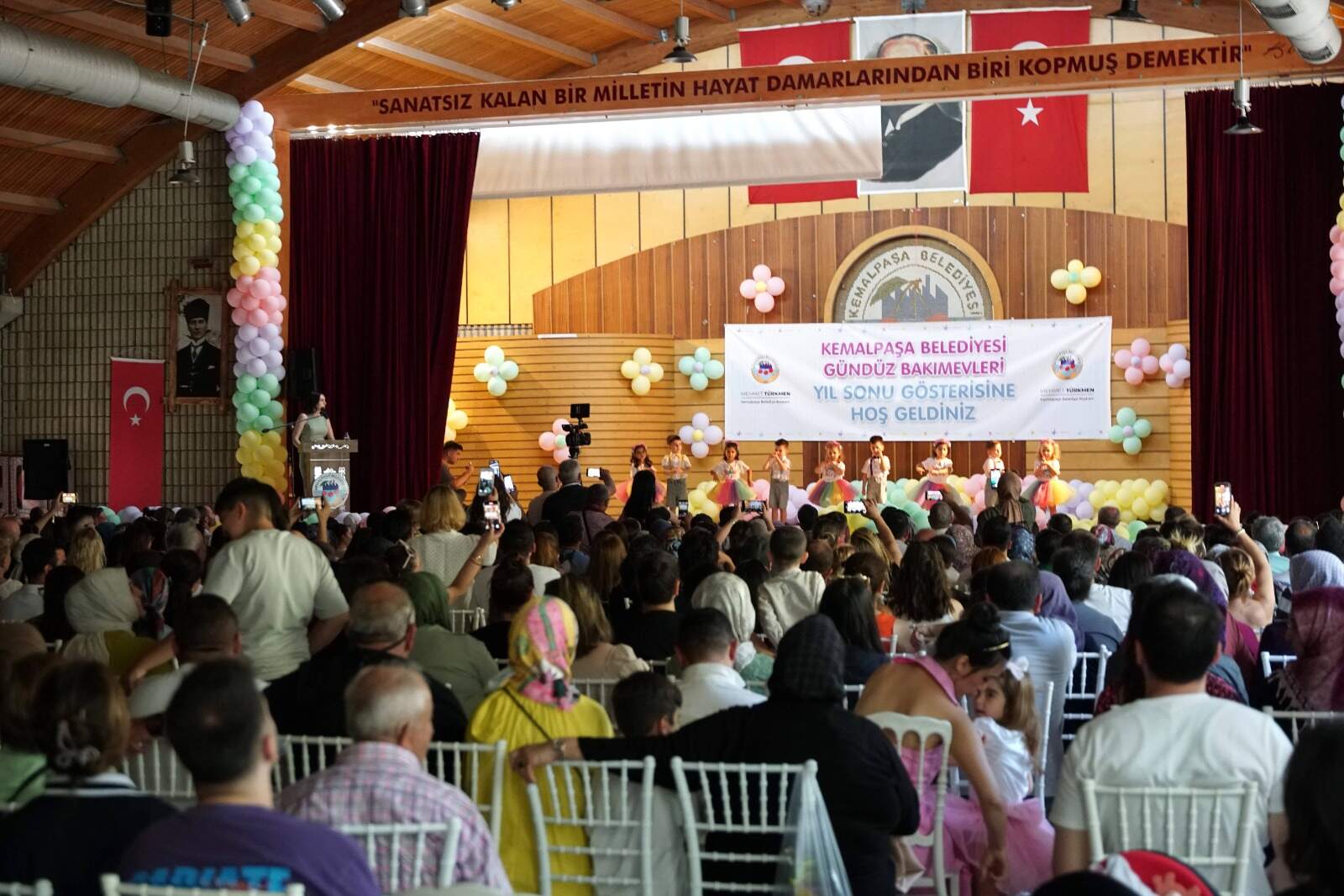 Son Mühür/Merve Turan - Kemalpaşa Belediyesi’ne bağlı Ulucak, Merkez, Örnekköy, Armutlu ve Ören mahallelerinde faaliyet gösteren Gündüz Bakımevlerinde eğitim alan 159 çocuk, yıl sonu etkinliğinde bir araya geldi. Dere Mesire Alanı Atatürk Salonu’nda gerçekleşen organizasyonda, minik öğrenciler yıl boyunca öğrendiklerini sahneledikleri gösterilerle izleyicilere sundu.