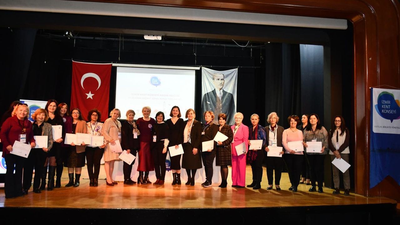 SON MÜHÜR - BALAMİR YILDIZ / İzmir Kent Konseyi Kadın Meclisi, 17. Olağan Seçimli Genel Kurulu'nda yapılan seçimde, İzmir’in kadın hakları ve yerel politikada kadınların demokratik katılımlarını artırmayı amaçlayan yeni yöneticiler belirlendi. Yeni seçilen yöneticiler, İzmir’de kadın politikalarına öncülük etmeye ve kentteki kadınların haklarının savunulması için çalışmalarını sürdürecek.