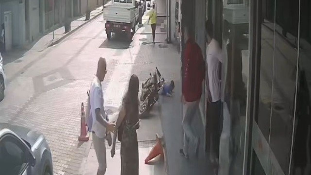 Motosikletin çalışmasıyla birlikte gaz koluna basan Ömer Halis, birkaç metre ilerledikten sonra dengesini kaybederek motosikletle birlikte yere devrildi. Yaşanan anlar, çevredeki bir iş yerinin güvenlik kamerasına saniye saniye yansıdı.