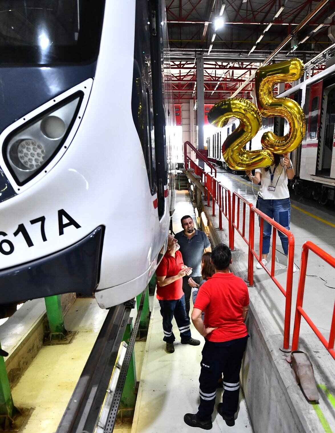 İzmir Metro AŞ çalışanları, 25 yıldır İzmirlilere en iyi hizmeti vermek için titizlikle çalıştıklarını vurguladı. Atölye personeli Cemil Kuş, futbolculuktan sonra başladığı metro işinde trenlere büyük emek verdiklerini belirtti. “Trenleri kendi ailemiz gibi görüyoruz” diyen Kuş, göreve başladığında evli olduğunu ve şimdi çocuğunun nişanlandığını, zamanın hızla geçtiğini ifade etti. Yine atölyede çalışan Hakan Çakın, üniversiteden sonra ilk işinin metro olduğunu ve buraya bağlılık duyduğunu söyledi.