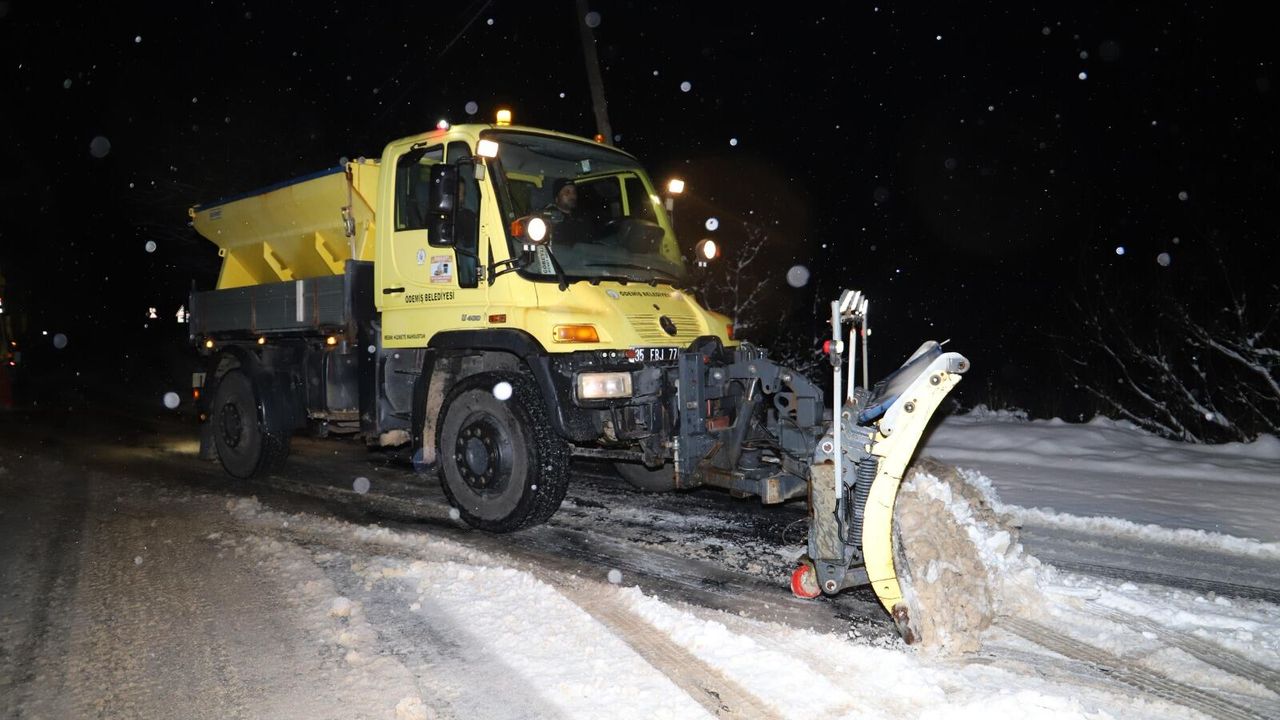 Dağlık alanlarda etkili olan kar yağışında, ulaşımın aksamadan sağlanabilmesi için belediye ekipleri yoğun çalışmalarını sürdürdü.
