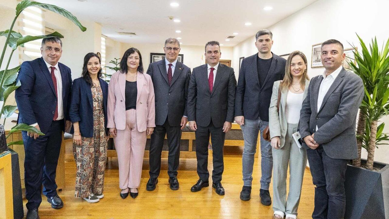 İzmir Büyükşehir Belediye Başkanı Dr. Cemil Tugay, ticaret alanındaki iş birliklerinin artırılmasının yanı sıra ulaşımda yapılacak düzenlemelerle ilgili değerlendirmelerde bulundu. Tugay, “Yönetimde yerel odaklanma başarıyı artırıyor. İş birliği yapmaya her zaman açığız. 2030 hedefimiz karbon nötrlük.