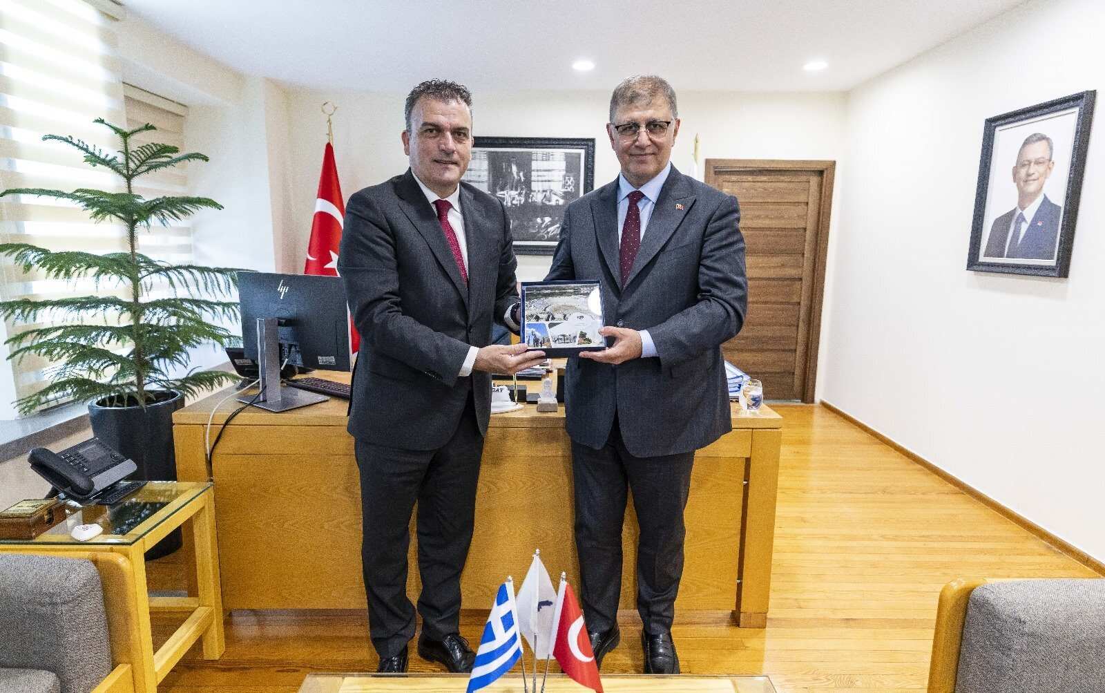 Son Mühür/Osman Günden- İzmir Büyükşehir Belediye Başkanı Dr. Cemil Tugay, Yunanistan’ın Larissa Belediye Başkanı Thanasis Mamakos ve beraberindeki heyeti ağırladı. İki kent arasında iklim nötr şehirler ve akıllı şehir uygulamaları başta olmak üzere ortak projeler ve iş birlikleri görüşüldü.