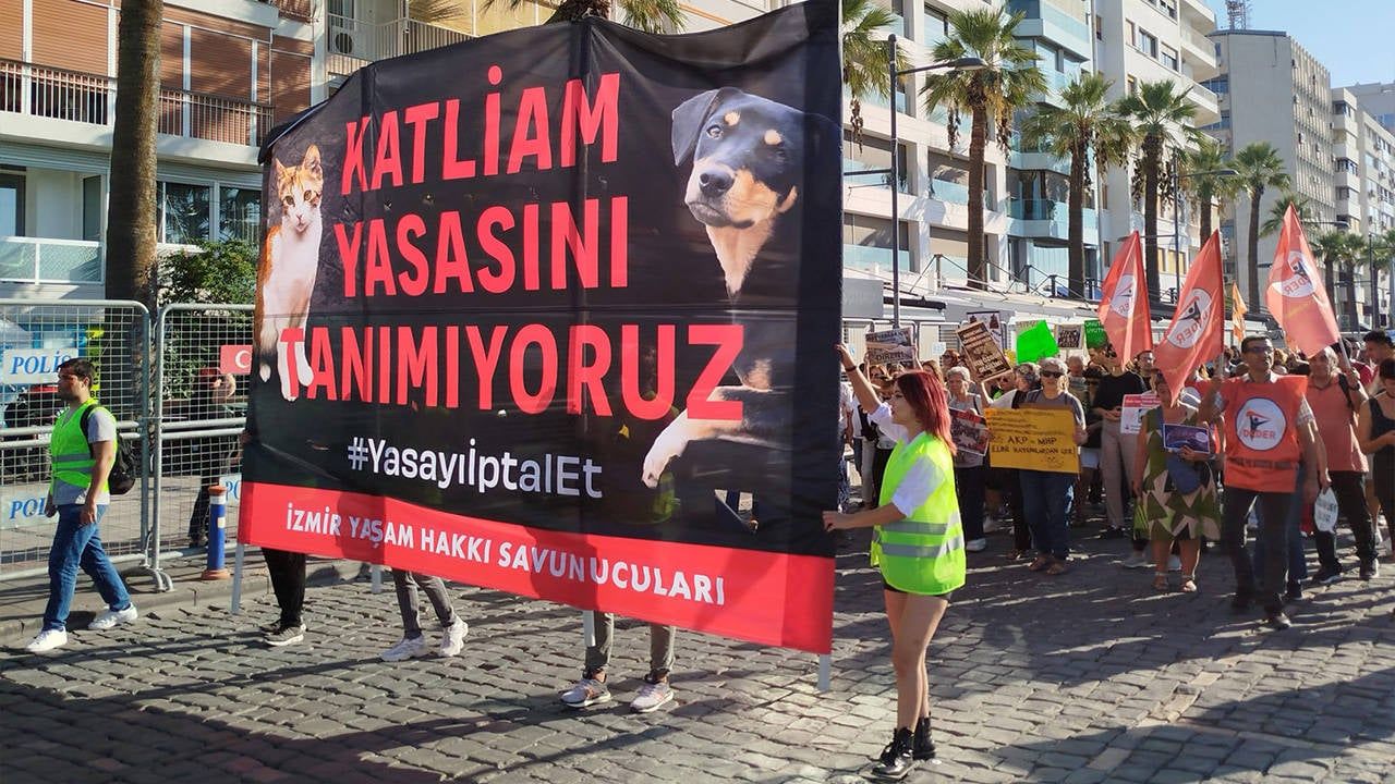Samet Zeybek'in de yer aldığı İzmir Yaşam Hakkı Savunucuları, ‘katliam yasası’ olarak bilinen Hayvanların Korunması Hakkında Uygulama Yönetmeliğini protesto etmek için eylemler düzenliyor.
