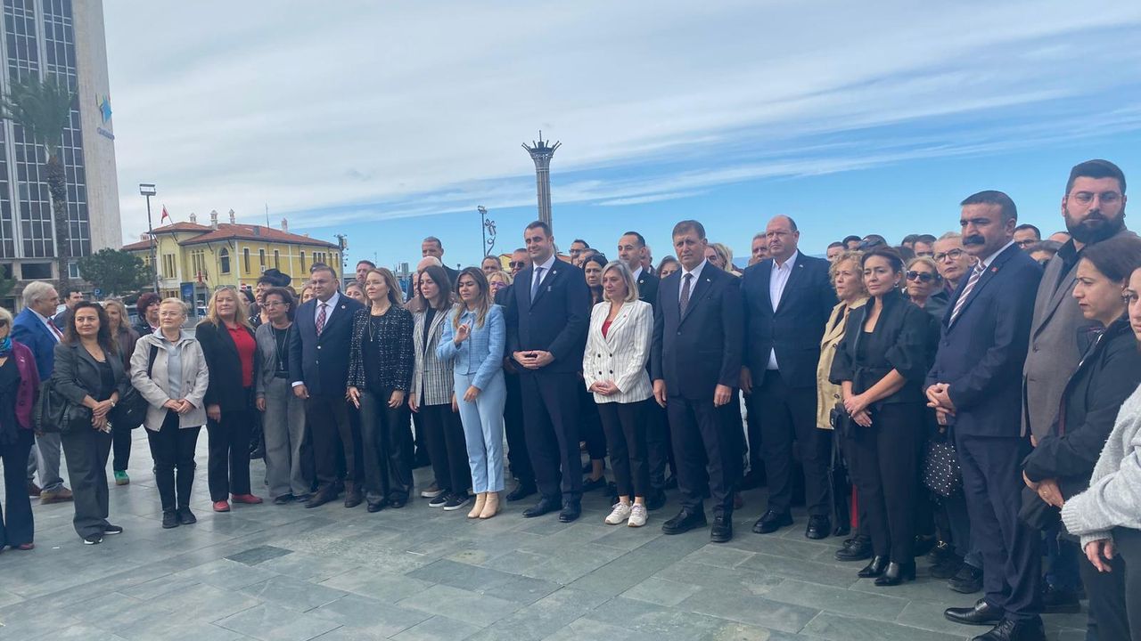 Son Mühür/ Emine Kulak- Cumhuriyet Halk Partisi (CHP) İzmir İl Başkanlığı, 24 Kasım Öğretmenler Günü dolayısıyla Cumhuriyet Meydanı’nda çelenk sunum töreni düzenledi. Törene İzmir Büyükşehir Belediye Başkanı Cemil Tugay, ilçe başkanları ve ilçe belediye başkanları da katıldı. Etkinlik kapsamında yapılan açıklamada öğretmenlerin önemi vurgulandı.