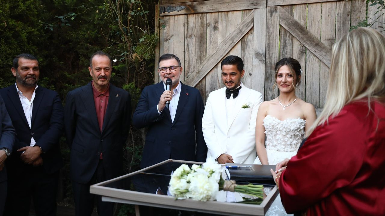 ''Balçova İlçe Başkanımız, dava ve yol arkadaşımız Oğuzhan Bizkevelci ile Yüce Ailesi’nin kıymetli evladı Tuğçe hanım kızımızın nikah törenine katılarak en mutlu anlarına şahitlik ettik. Bizkevelci ve Yüce ailelerini tebrik ediyor, genç çiftimize Rabb’imden iki cihan saadeti diliyorum. Hanelerinden mutluluk hiç eksik olmasın.''