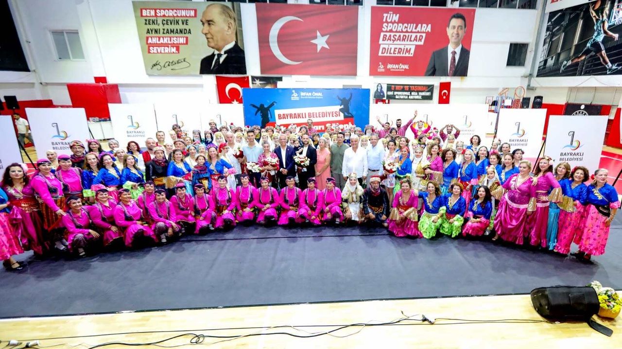 Bayraklı'dan aydınlık nesillerin ve geleceğin başarılı sanatçı ve sporcularının yetişmesine katkıda bulunmaya devam edeceğiz. Bize keyifli anlar yaşatan, farklı yörelerden performanslarıyla göz dolduran tüm halk oyunları ekiplerini, emeği geçen kursiyerlerimizi ve hocalarını yürekten kutluyorum” diye konuştu.