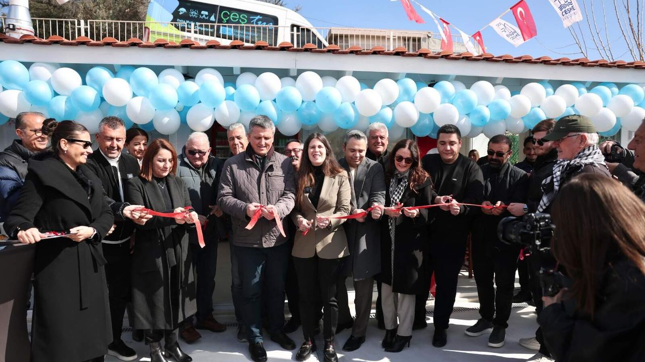 Çeşme Belediye Başkanı Lal Denizli, konuşmasının ardından belediye başkan yardımcıları, belediye meclis üyeleri ve Çeştur Genel Müdürü Deniz Arı ile birlikte kurdeleyi keserek, Çeştur Kafe Alaçatı’nın açılışını gerçekleştirdi.