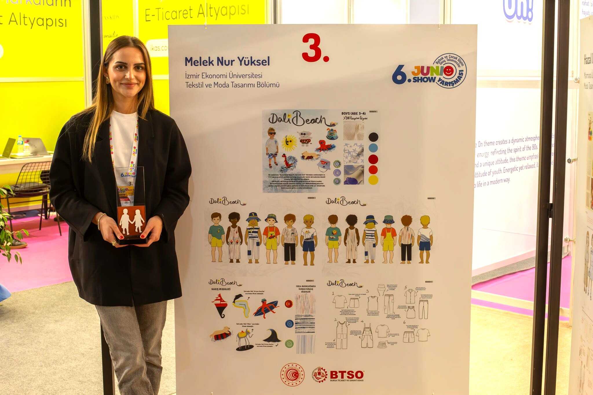İzmir Ekonomi Üniversitesi (İEÜ) Tekstil ve Moda Tasarımı Bölümü üçüncü sınıf öğrencisi Melek Nur Yüksel, ‘Gerçeküstü Hayal Et, Sorumlu Üret’ temasıyla katıldığı yarışmada, sentetik madde içermeyen, sağlıklı ve doğal tasarımlarıyla dikkat çekti.
