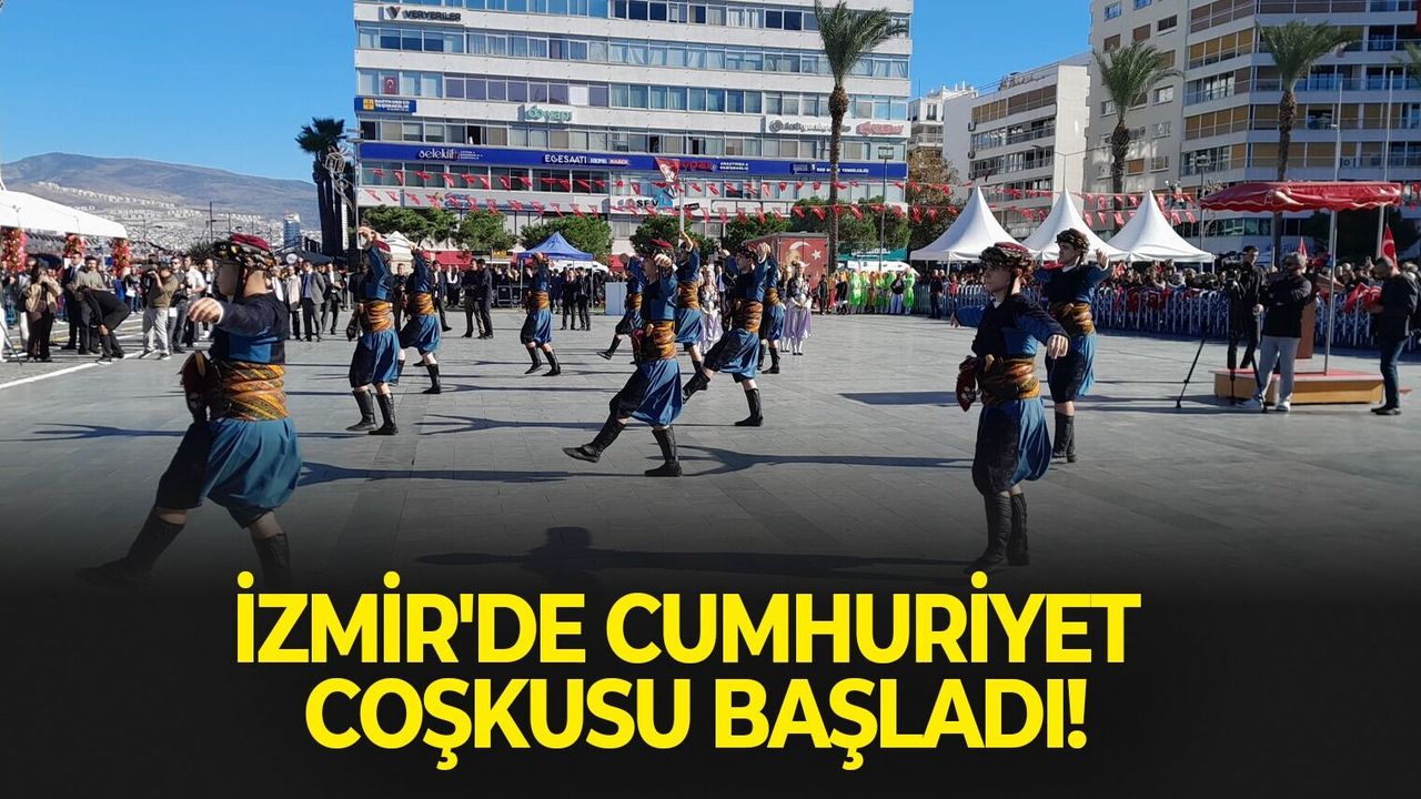 Başta İzmir Valisi Süleyman Elban, Garnizon Komutanı İrfan Özsert ve İzmir Büyükşehir Belediye Başkanı Cemil Tugay'ın katılımlarıyla halk oyunları gösterisiyle başlayan kutlamalar, askeri bandonun marşlar çalmasıyla devam eden etkinliklerde vatandaşlar alkışlarla coşkuya ortak oldu.