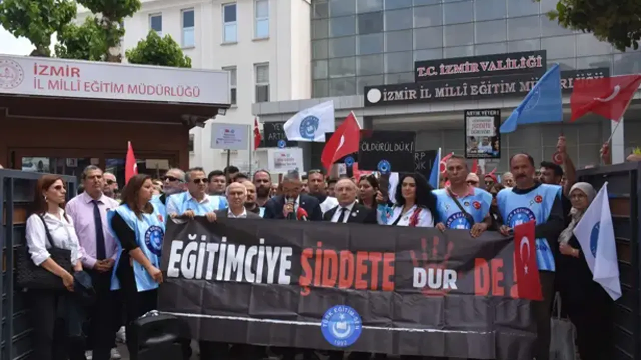 Eyüpsultan'da özel bir lisede okul müdürü olan İbrahim Oktugan'ın, Irak asıllı lise öğrencisi Y.K. tarafından öldürülmesinin ardından, sendikalar iş bırakma çağrısı yaptı. İzmir'de de olayı protesto etmek ve meslektaşlarına yönelik şiddeti durdurmak için bugün derse girmeyen ve iş bırakan eğitimciler, Türk Eğitim-Sen öncülüğünde İzmir İl Milli Eğitim Müdürlüğü önünde bir araya geldi. Alanı dolduran ve ellerinde 'Eğitimciye şiddete dur de', 'Öldürüldük', 'Öğretmenler şiddete uğruyor' yazılı dövizler taşıyan eğitimciler, sloganlarla tepkilerini dile getirdi.