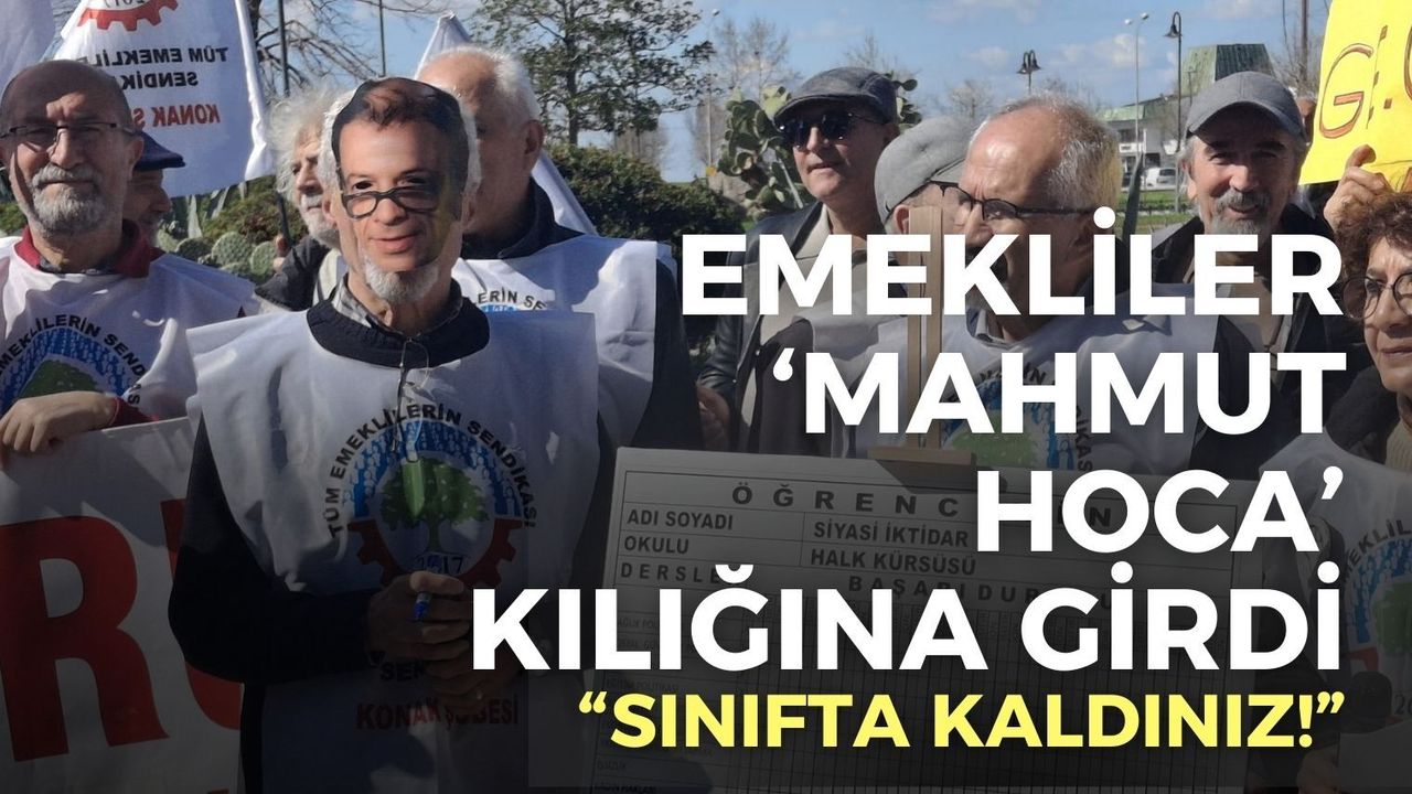Son Mühür / Yağmur Daştan - Tüm Emeklilerin Sendikası İzmir Şubeler Platformu üyeleri Konak’ta bir araya gelerek, “Müsait zamanda değil, hemen şimdi! Sefalet ücretine hayır” diyerek basın açıklaması düzenledi. Açıklamada, yapılan maaş zammını eleştiren emekliler ‘Geçinemiyoruz!’ diyerek taleplerini sıraladı. Yeşilçam’ın kült filmlerinden Hababam Sınıfı’nın Mahmut Hocası’nın maskesini takarak iktidar politikalarına not veren emekliler “Sınıfta kaldınız” dedi.