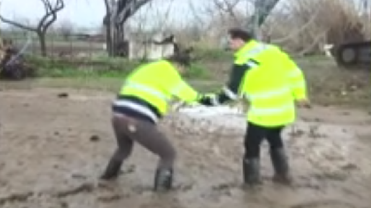 Yerel gazeteci Ergün Çelik, selden etkilenen alanları görüntülemek ve yaşanan mağduriyeti haberleştirmek için tarım arazisinde yürüdüğü sırada yoğun çamur nedeniyle zemine saplandı.