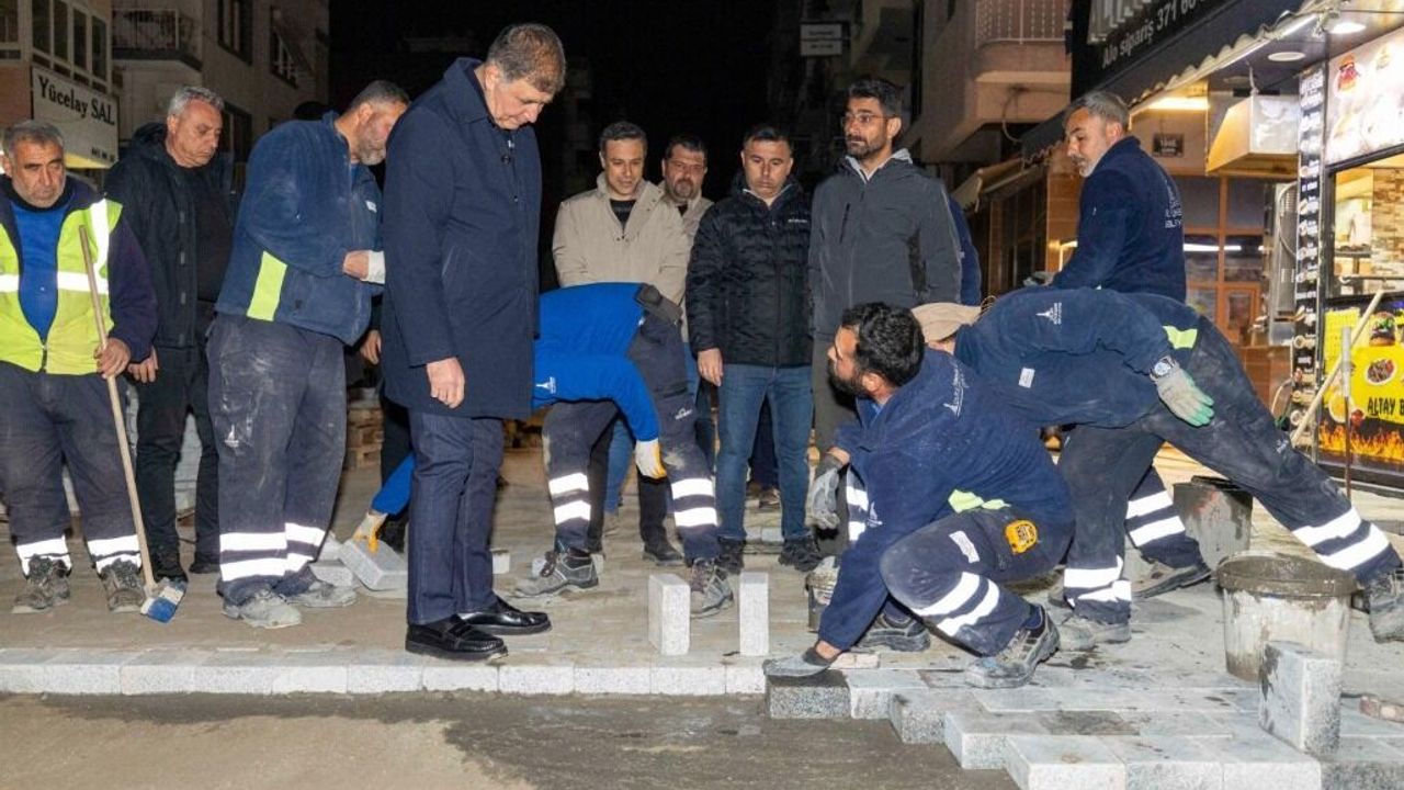 Son Mühür/ Osman Günden- İzmir Büyükşehir Belediye Başkanı Dr. Cemil Tugay, kentin ulaşım konforunu artırmak ve kamusal alanları modernize etmek amacıyla yürütülen saha çalışmalarını gece yarısından şafak vaktine kadar yerinde takip etti. "Güzel İzmir Hareketi" kapsamında Bayraklı ve Buca ilçelerinde yoğunlaşan faaliyetleri inceleyen Başkan Tugay, mesaisine gece saat 01.00 sularında Bayraklı Sevgi Yolu’nda başladı. Genel Sekreter Yardımcısı Halit Çelik ve İZBETON yetkililerinin eşlik ettiği ziyarette Tugay, asfaltın sıcaklığında ve altyapının zorlu koşullarında ter döken işçilerle bir araya gelerek yorgunluk çayı içti ve personelin moralini yükselten samimi bir sohbet gerçekleştirdi.